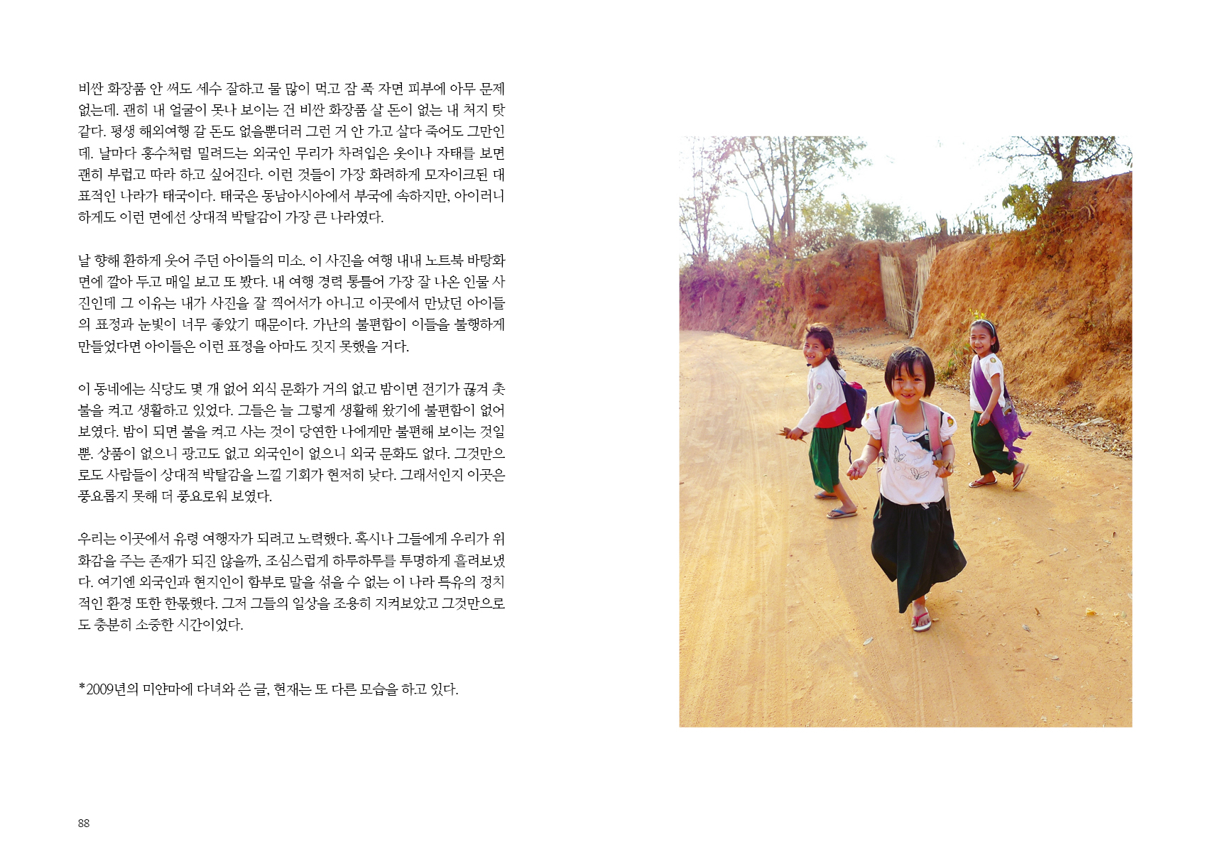 태국 산골에서 다섯 달째 머물고 있을 때, 만나는 여행자들마다 물었다. 도대체 여기서 뭐해요? 그동안 뭐 했어요? 그럼 대답했다. 아무것도 안 해요. 안 했어요. 그냥 나는 빈 종이 같은 시간이 필요했고 빠이는 그러기에 최적의 장소였다.